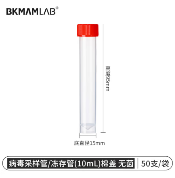 首页 > 仪器仪表 > 生物、医学样品制备设备 > 比克曼生物(BKMAM)病毒采样管/冻存管 PP平底可立一次性空管无垫圈 50支/包 棉盖 无菌 (zhyghf_221722172)SKU:yzwhyp886113