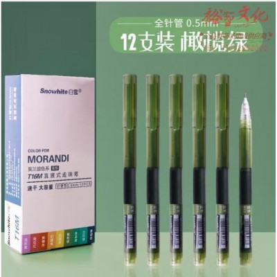 首页 > 办公用品 > 文具 > 白雪(snowhite) T16M盐系莫兰迪色系直液式走珠笔速干0.5mm彩色中性笔学生用ins简约 12支橄榄绿 (zhyghf_23099808)SKU:yzwhyp886137
