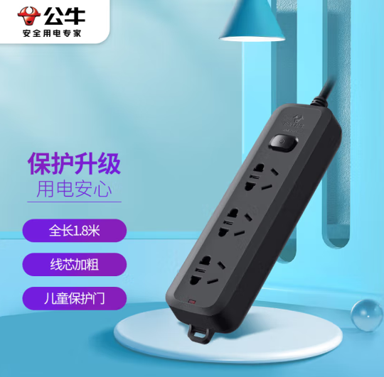 公牛(BULL)插座/插排GN-B8030H 黑色3位总控全长1.8米 (zhyghf_221712237)SKU:yzwhyp886304