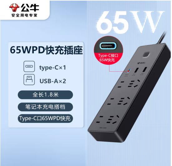 首页 > 建筑建材 > 开关插座 > 公牛GNV-UU1656 65WPD快充插座/插线板/插排/接线板 Type-c口 USB接口 6插孔 1.8米黑色 (zhyghf_221711906)SKU:yzwhyp886360