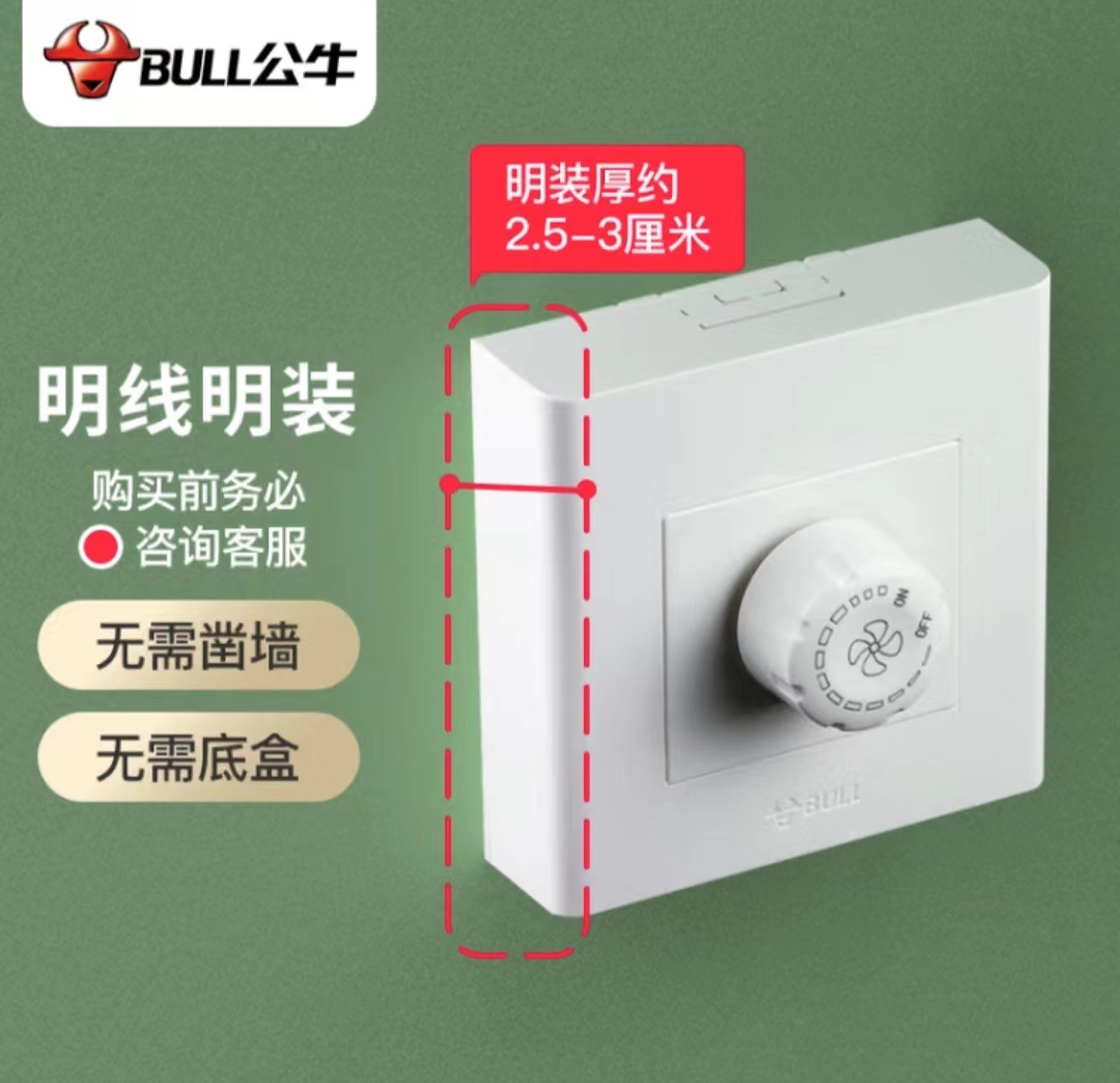 公牛明装墙壁开关插座G09D102调速开关面板 86型墙插面板 (zhyghf_221712248)SKU:yzwhyp886366
