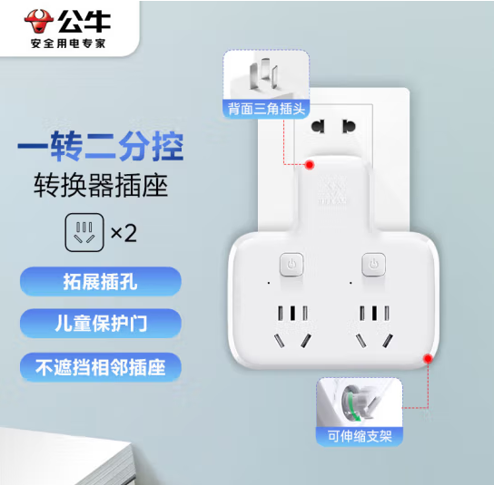 首页 > 建筑建材 > 开关插座 > 公牛(BULL)GN-96023转换插头/品字形一转二插座/无线转换插座/电源转换器 2位分控 (zhyghf_221712262)SKU:yzwhyp886367