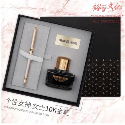 英雄(HERO)钢笔女士礼盒年会奖品套装10K金笔尖钢笔墨水笔细款明尖H703 优雅金F尖 (zhyghf_23099631)SKU:yzwhyp886436