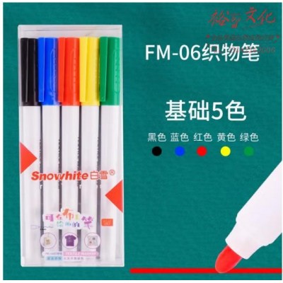 白雪(snowhite) 彩色笔织物笔记号笔便携式可涂鸦笔防水马克笔绘画笔FM06 基础5色 (zhyghf_23099915)SKU:yzwhyp886555