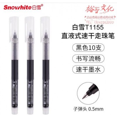 首页 > 办公用品 > 文具 > 白雪(snowhite)T1155中性笔简约无印风0.5mm大容量直液式速干走珠签字笔办公用品 黑色10支 (zhyghf_23099898)SKU:yzwhyp886594