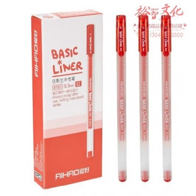 爱好(AIHAO)大容量中性笔0.5mm全针管商务办公签字笔红色12支/1盒 8761 (zhyghf_23099954)SKU:yzwhyp886630