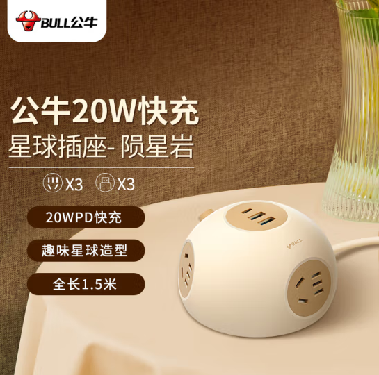 首页 > 建筑建材 > 开关插座 > 公牛(BULL)20W PD苹果快充星球插座/插线板/插排/排插/拖线板 半球型 3个五孔 3个USB GNV-U1203Q 陨星岩 (zhyghf_221711984)SKU:yzwhyp886903