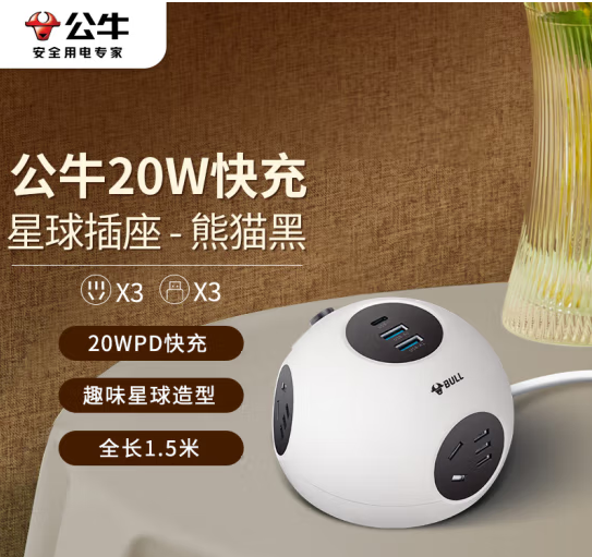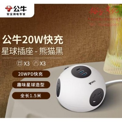 首页 > 建筑建材 > 开关插座 > 公牛(BULL)20W PD苹果快充星球插座/插线板/插排/排插/拖线板 半球型 3个五孔 3个USB GNV-U1203Q 熊猫黑 (zhyghf_221711987)SKU:yzwhyp886904