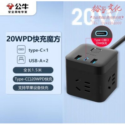 首页 > 建筑建材 > 开关插座 > 公牛(BULL)20W PD苹果快充魔方插座/插线板/插排/接线板 Type-c口 USB口 3插孔 全长1.5米黑色 GNV-UU2203H (zhyghf_221711990)SKU:yzwhyp886905