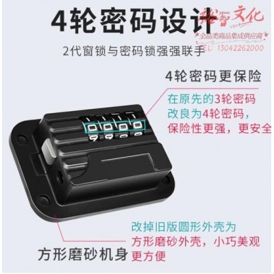 海斯迪克 HKL-280 免打孔安全锁 窗户锁扣抽屉锁 窗户限位器 四轮密码锁(黑) (zhyghf_27001638)SKU:yzwhyp887040