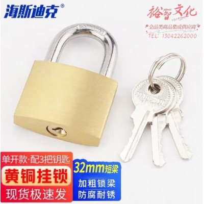 海斯迪克 黄铜挂锁 电力表箱锁柜子门锁防盗小锁头 32mm短梁单开 HKT-147 (zhyghf_27001838)SKU:yzwhyp887152