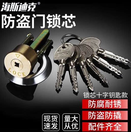 海斯迪克 安防大门房门防盗锁芯外装防撬锁芯 锁芯十字钥匙款 HKQL-6 (zhyghf_27001850)SKU:yzwhyp887164