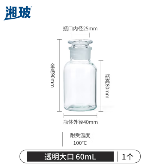 首页 > 仪器仪表 > 生物、医学样品制备设备 > 比克曼生物 湘玻 磨口瓶化学试剂瓶玻璃密封磨砂广口瓶小口收集气取样瓶棕色透明样品瓶实验室 【60ml】透明大口 (zhyghf_221722231)SKU:yzwhyp887172
