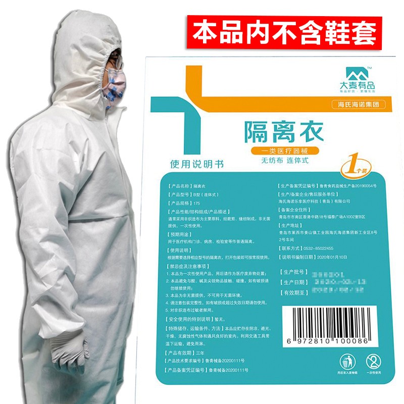 海氏海诺 一次性使用隔离服隔离衣男女防护服 无纺布连体式SKU:yzwhyp887397