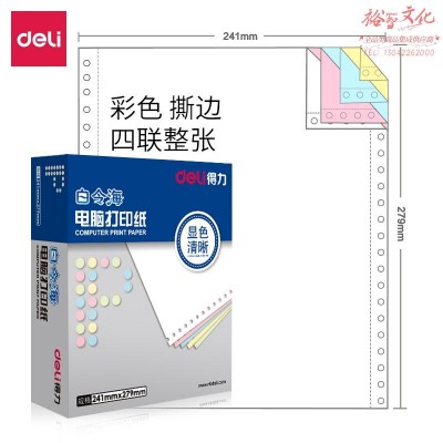 首页 > 纸及纸质品 > 纸及纸板(不包含复印纸) > 得力 白令海针式打印纸 四联整张打印纸 可撕边电脑打印纸 彩色(白红蓝黄)送货单 1000页/箱241-4CS(zhyghf_831700101)SKU:yzwhyp887429