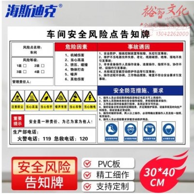 首页 > 建筑建材 > 其他防护用品 > 海斯迪克 安全风险点告知牌 危险品配电房机器仓库安全警示牌 车间安全风险点告知牌 30cm*40cm HKQL-16 (zhyghf_27002295)SKU:yzwhyp887912