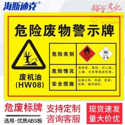 首页 > 建筑建材 > 其他防护用品 > 海斯迪克 安全标识牌 1个 废机油30×20CM 1mmABS板 危废有毒有害易燃警告标志 gnjz-1343 (zhyghf_27002296)SKU:yzwhyp887913