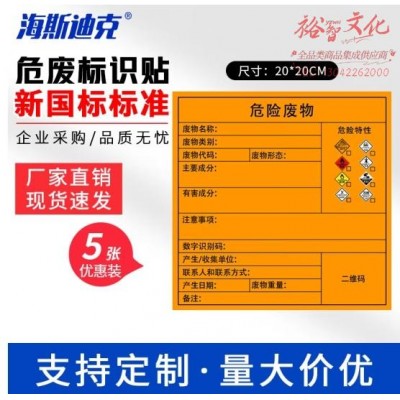 海斯迪克 危险废物标识牌(5张)标签不干胶贴纸 综合20×20cm gnjz-1326 (zhyghf_27002304)SKU:yzwhyp887921