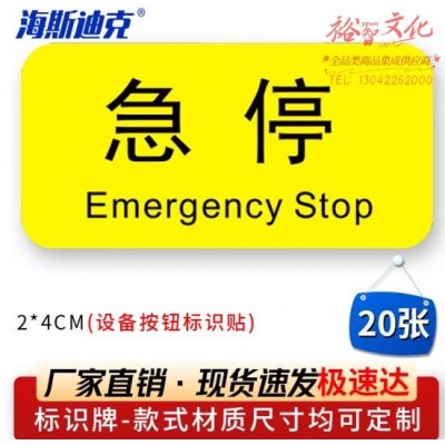 首页 > 建筑建材 > 其他防护用品 > 海斯迪克 HK-5083 机械设备按钮标识贴 2*4cm 控制箱电力警告贴纸 急停(20张) (zhyghf_27002353)SKU:yzwhyp887941