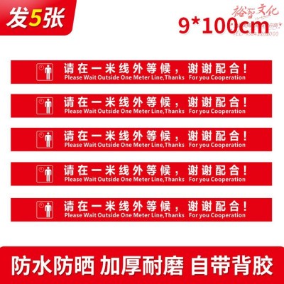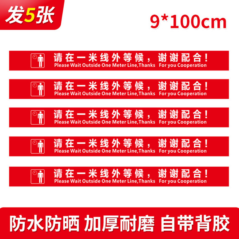 鸣固 一米线地贴防滑耐磨 地标车站排队等候安全标识 加厚红 9cm×100cm(5条装)SKU:yzwhyp888058