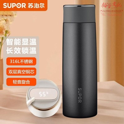 苏泊尔KC43HW10 316L不锈钢 办公商务智能显温保温杯430ML 晶石黑 (zhyghf_9350611)SKU:yzwhyp888081