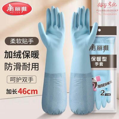 美丽雅 家务清洁橡胶洗碗手套 加绒加厚加长胶皮手套均码 颜色随机(zhyghf_981206420)SKU:yzwhyp888192