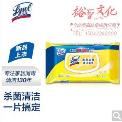 乐守Lysol 家居表面清洁湿巾80片袋装(柠檬微风)添加表面活性剂 去油污(zhyghf_981100203)SKU:yzwhyp888413