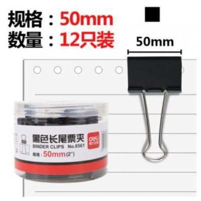 得力(deli)12只50mm黑色长尾夹票夹 大号金属燕尾夹票据文件夹子 办公用品 8561