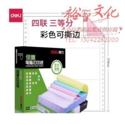 得力 deli 佳宣 J241-4电脑打印纸(1/3CS彩色撕边)(盒)(zhyghf_831700080)SKU:yzwhyp888489