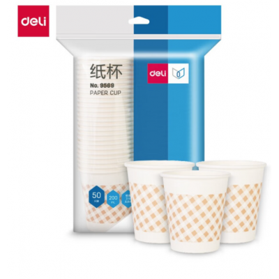 得力(deli)KO9569-44纸杯(白)200ml(50只/包)7盎司240g太阳纸+18gPE膜