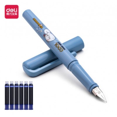 得力A948 源源得力练字钢笔EF明尖(可擦纯蓝)(1笔+6墨囊+1贴纸/卡)