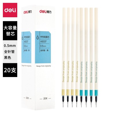 得力A5037 中性笔替芯0.5mm全针管(黑)(20支/盒)