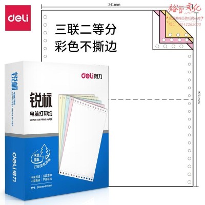 首页 > 纸及纸质品 > 纸及纸板(不包含复印纸) > 得力 锐标 三联二等分不撕边打印纸 彩色 (241-3-1/2C色序:白红黄600页/箱) 261200492(zhyghf_261200492)SKU:yzwhyp888620