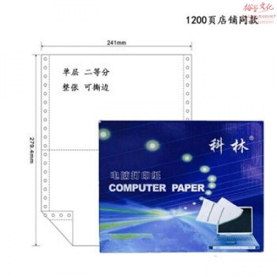 科林电脑打印纸241-1联单层二等分电脑针式打印纸1200页白色可撕边(zhyghf_801900128)SKU:yzwhyp888638