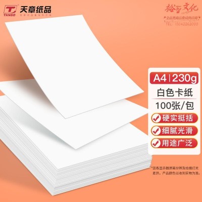 首页 > 纸及纸质品 > 纸及纸板(不包含复印纸) > 天章(TANGO)A4白卡纸白色硬卡纸 加厚A4纸 剪纸白色装230g100张 P5211(zhyghf_261200538)SKU:yzwhyp888714