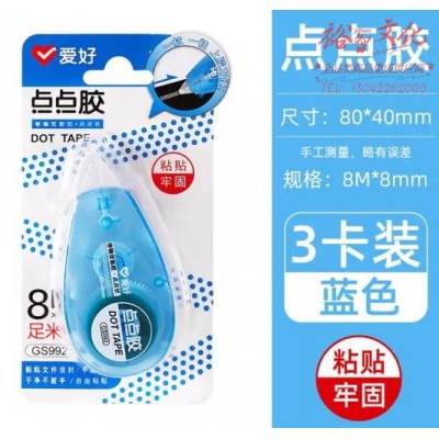 爱好(AIHAO)文具学生大容量点点胶修正带【8m*3】蓝色3卡-GS992 (zhyghf_23100118)SKU:yzwhyp888745