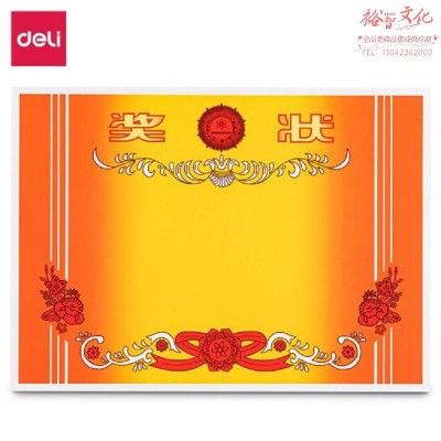 得力(deli) A4奖状纸 中小学生表扬表彰奖状 加厚双胶纸 SKU:yzwhyp322684