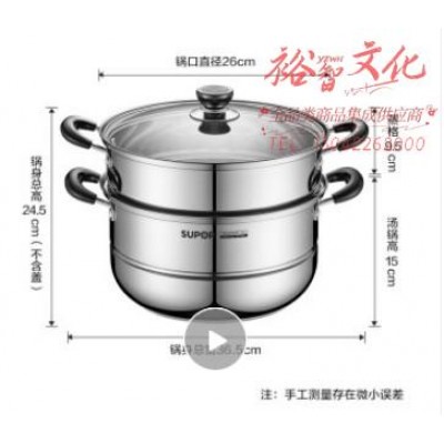 苏泊尔 好帮手304不锈钢双层复底26cm蒸锅燃气电磁炉通用汤锅蒸笼SZ26B5(zhyghf_Q23100056)SKU:yzwhyp888927