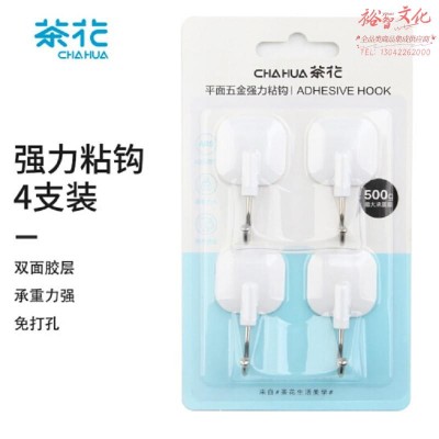茶花 2912平面五金强力粘钩 免钉浴室门后挂钩 免打孔无痕卫生间衣服毛巾挂钩强力粘钩 4支装(zhyghf_3302818)SKU:yzwhyp888990