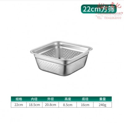 不锈钢方筛 22cm 滤水盆304漏水盆平底沥水盆洗菜筐卤菜盘漏油盆 (zhyghf_71912463)SKU:yzwhyp889101