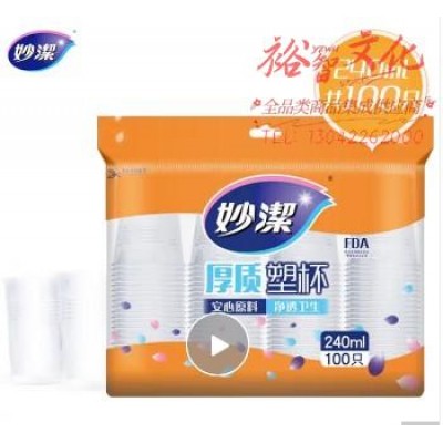 妙洁 一次性杯子杯 塑料杯 加厚240ml中号100只装(塑料杯 非纸制杯) (zhyghf_71912533)SKU:yzwhyp889127