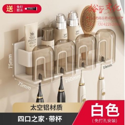 漱口杯 牙杯壁挂式收纳架 白色-四人铝牙刷架带4杯(免打孔) (zhyghf_1230421)SKU:yzwhyp889168