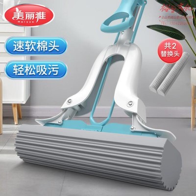美丽雅拖把免手洗海绵拖把懒人对折挤水家用吸水胶棉拖布28cm共2个拖头(zhyghf_9812059290)SKU:yzwhyp889235