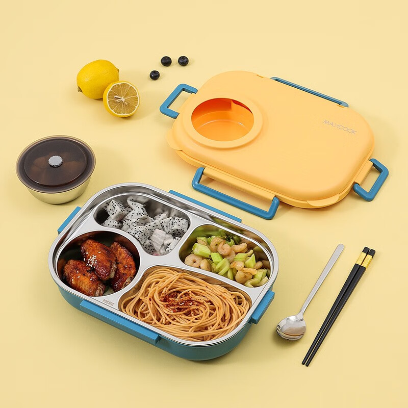 首页 > 用具 > 其他厨房用具 > 美厨(maxcook) 304不锈钢饭盒 加大加深分格餐盒分隔饭盒保温便当盒配密封盖 四格·1.6L·北欧蓝MCFT1559(zhyghf_982600099)SKU:yzwhyp889285