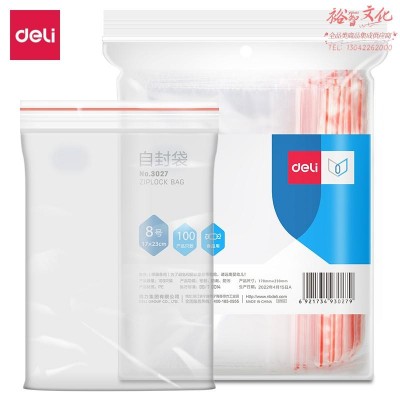 首页 > 用具 > 其他厨房用具 > 得力(deli)食品自封袋8号24*17cm 加厚防水PE透明密封袋密实袋封口袋 收纳封口胶袋防尘密封袋透明100只 3027(zhyghf_982500201)SKU:yzwhyp889459