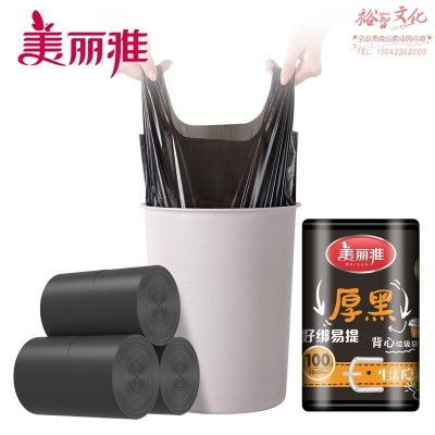 美丽雅垃圾袋大号加厚背心手提式厚黑塑料垃圾桶黑色50*60cm*100只(zhyghf_980600285)SKU:yzwhyp889461