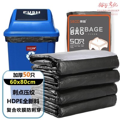 首页 > 用具 > 其他厨房用具 > 斯图(sitoo)加厚大号垃圾袋户外分类垃圾袋保洁袋垃圾桶袋商用酒店物业环卫黑色大塑料袋 60cm*80cm【50个装】双面3丝(zhyghf_980600338)SKU:yzwhyp889527