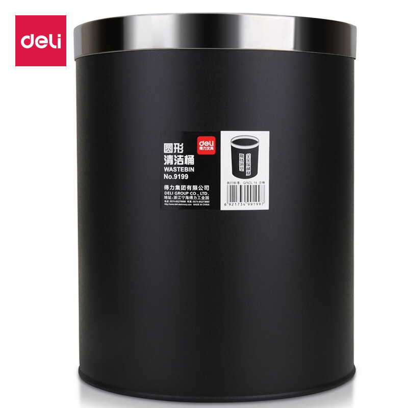 得力(deli)9199 耐用带压圈不锈钢垃圾分类垃圾桶 圆形清洁桶纸篓 黑色(zhyghf_981205531)SKU:yzwhyp889565