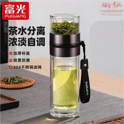 富光泡茶师玻璃杯双层透明玻璃水杯茶水分离杯泡茶杯子260ml 枪色 G2205-SH-260(zhyghf_981500098)SKU:yzwhyp889611