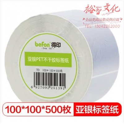 首页 > 纸及纸质品 > 纸及纸板(不包含复印纸) > 得印(befon)哑银PET标签纸 100mm*100mm*500枚单排 亚银不干胶条码打印纸 防水pet贴纸 三防固定资产设备标签 (zhyghf_221711414)SKU:yzwhyp889624